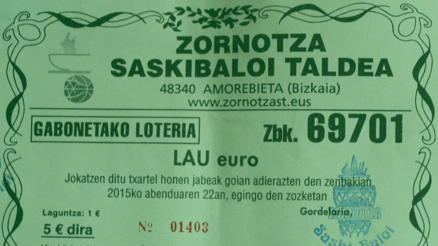 Todos los entrenadores y jugadores del club venden lotería, así que si tienes a algún conocido que ejerza algunas de esas funciones contacta con él y puedes comprarle algún boleto. Si no es el caso puedes comprar lotería del Zornotza ST en los bares de Amorebieta-Etxano y los días de partido del equipo de LEB Plata en el Polideportivo de Larrea en taquilla.