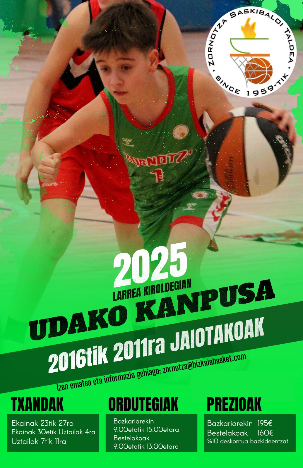 Zornotza STtik 2025eko Udako Kanpusaren proposamen berria kaleratu dugu. 2016 eta 2011 urteen artean jaiotako haurrentzat, bi datak barne. Jarduera Larrea kiroldegian egingo da, 3 txandatan.